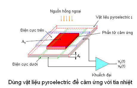 Người ta kẹp vật liệu pyroelectric giữa 2 bản cực, khi có tác kích của các tia nhiệt, trên hai 2 bản cực sẽ xuất hiệu tín hiệu điện, do tín hiệu yếu nên cần mạch khuếch đại.
